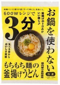 お鍋を使わず、どんぶりに麺とお湯を入れてレンジで3分で作れる釜揚げうどんです。